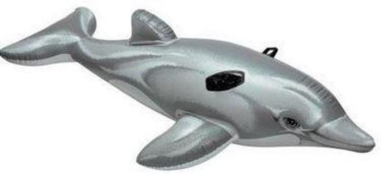 Intex opblaasdieren.dolfijn.ride on dolfijn, met twee handgrepen voor een stabiele zit. Afmetingen: 175 x 66cm. Vervaardigd van stevige kwaliteit vinyl. Inclusief reparatiesetje.geschikt voor kinderen vanaf 3 jaar.