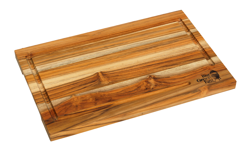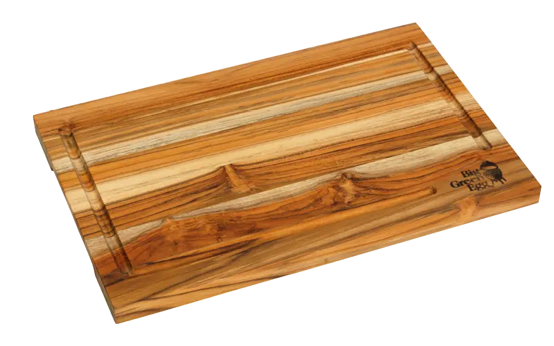 Het robuuste werkblad van de Teak Cutting Board van Big Green Egg is onmisbaar voor iedere kok. Elke snijplank is een kunstwerk: een coproductie van moeder natuur en een bevlogen ambachtsman. Snijd de entrecôte maar aan, terwijl de druipgoot ervoor zorgt dat de vleessappen niet op je mooie tafelkleed komen.