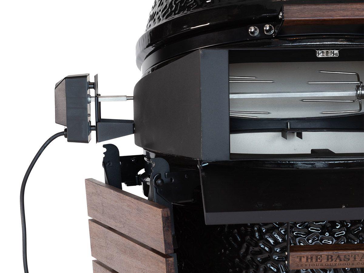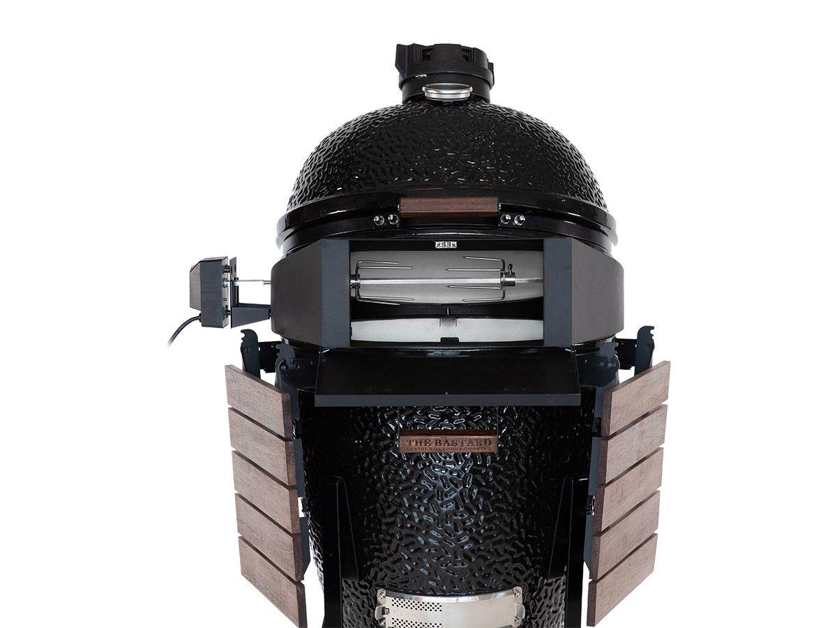 Met The Bastard pizza rotisserie ben je verzekerd van perfecte grillsessies.Wil jij de perfecte pizza kunnen maken op jouw Bastard barbecue? Met de pizza rotisserie van The Bastard ben jij verzekerd van een constante temperatuur. De combinatie maakt het mogelijk om je Bastard in een pizza oven te transformeren met en makkelijk te openen pizza deur. Draai de pizza tijdens het bakken 3x een kwartslag voor het beste resultaat.Zorg dat je de pizza rotisserie altijd gebruikt in combinatie met de plate setter. Dit accessoire past op The Bastard Medium modellen vanaf 2019.