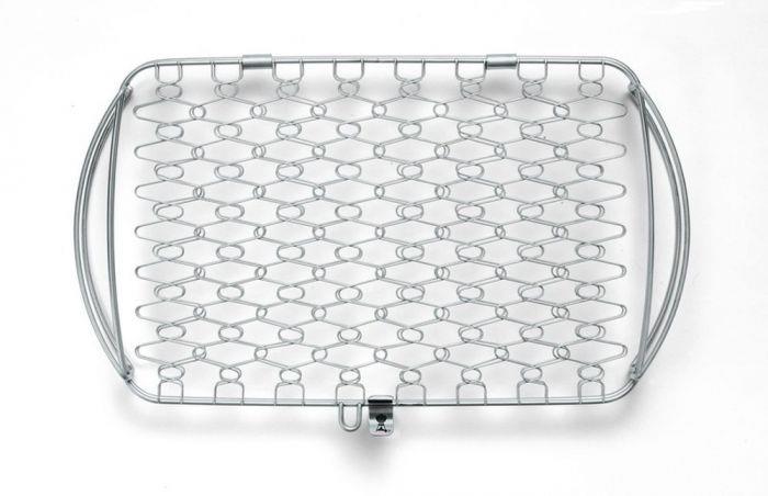 De Weber viskorf groot is is geschikt voor de bereiding van fijn of delicate gerechten op de barbecue. Zo is de korf ideaal voor het bereiden van vis, maar ook groente kun je hier goed in bereiden. De viskorf is gemaakt van roestvrij staal en is vaatwasserbestendig. Daarnaast biedt de flexibele draadconstructie ruimte aan veel verschillende maten en vormen van gerechten. De Weber viskorf groot is 28,8 centimeter hoog, 46 centimeter breed en 6 centimeter diep. Deze viskorf is geschikt voor de Weber Q 300/3000 en grotere gas- of houtskoolbarbecues met een minimale diameter van 47 cm.