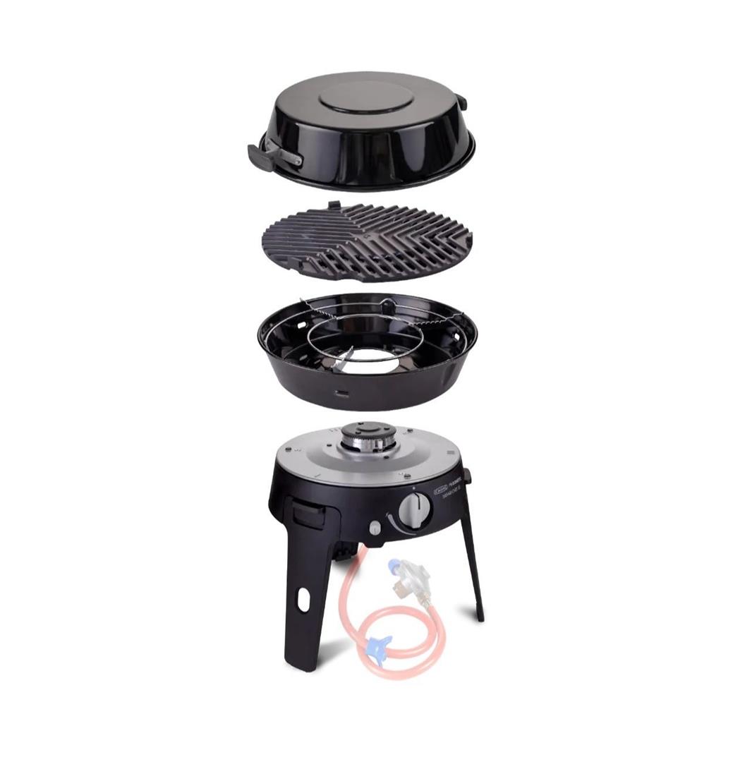 De Safari Chef 30 is een lichte en veelzijdige gasbarbecue die ideaal is voor reizen en kamperen. Met een gewicht van slechts 5 kg en drie verschillende kookopties – een pandrager, een BBQ-rooster en een deksel dat ook als soeppan dient – biedt deze barbecue tal van mogelijkheden voor buitenkoken.