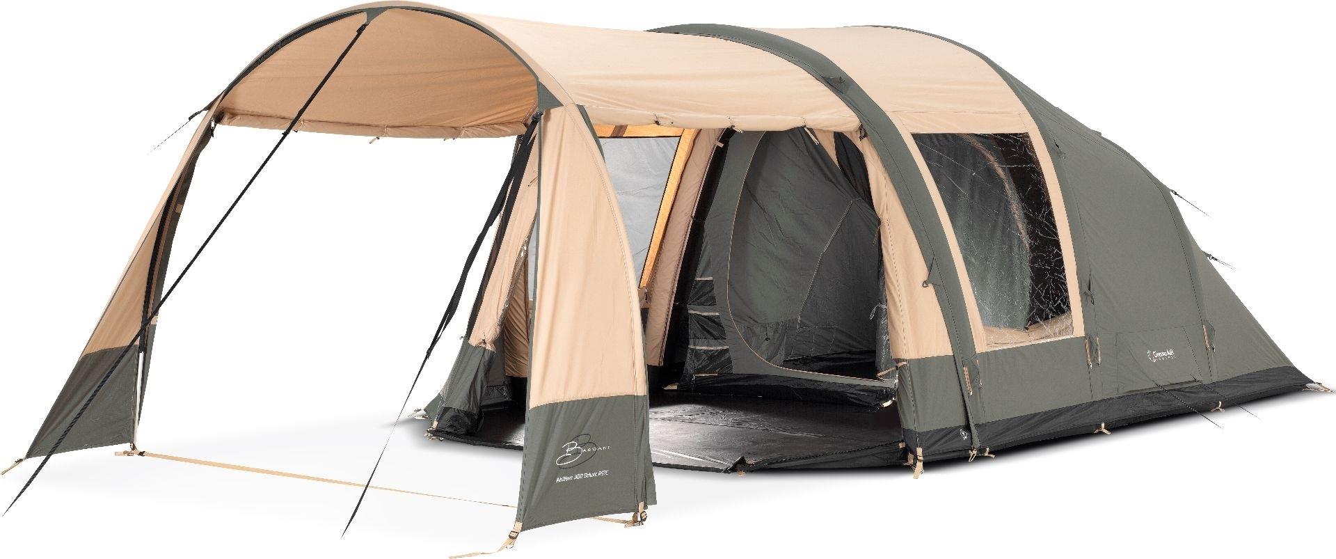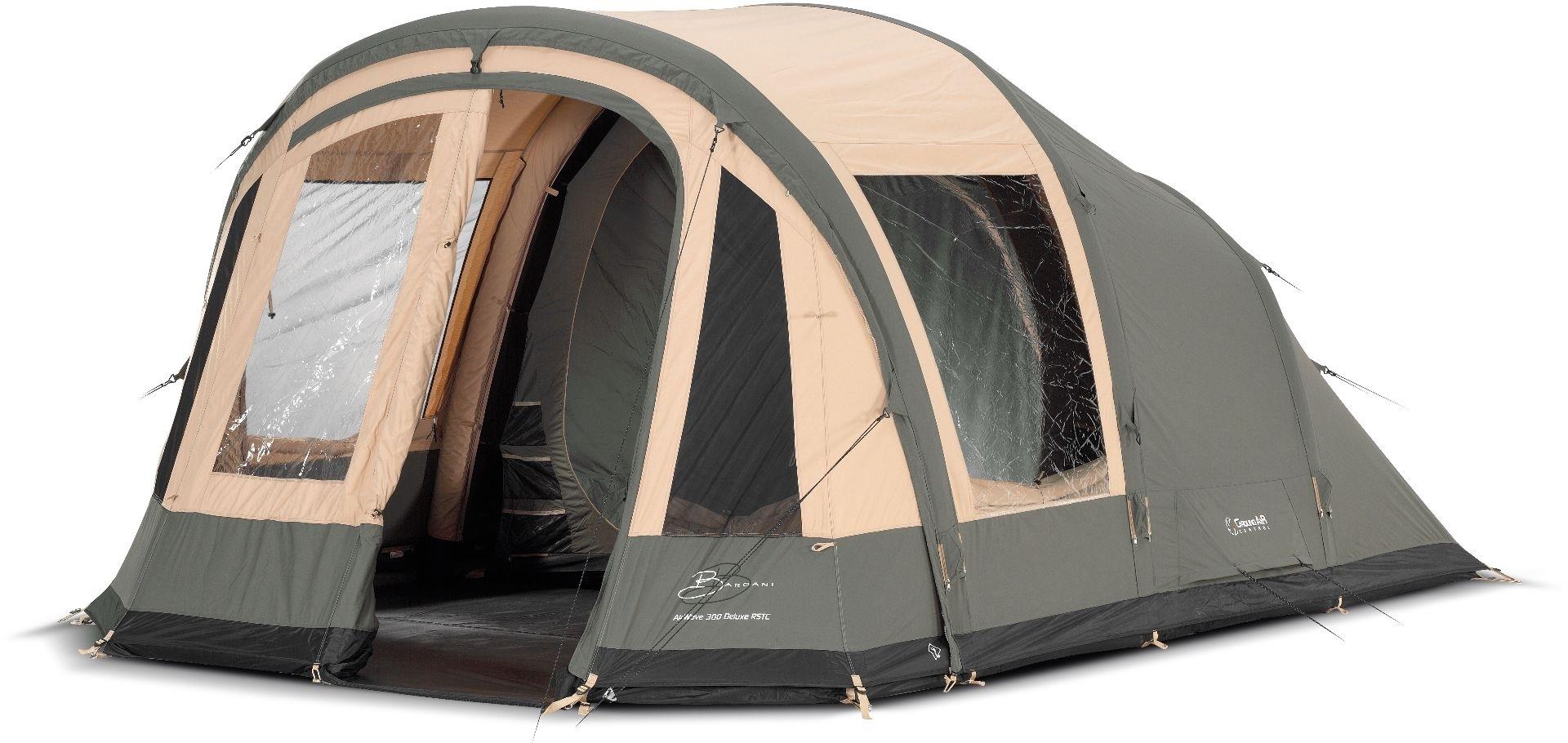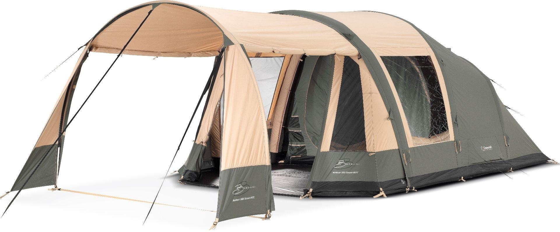 De Bardani AirWave 300 Deluxe RSTC opblaasbare tent heeft een luxe, grote, aanritsbare luifel met oprolbare zijwanden. Deze ruime opblaasbare tent van Bardani biedt voldoende leefruimte aan een familie of gezelschap van vier personen.