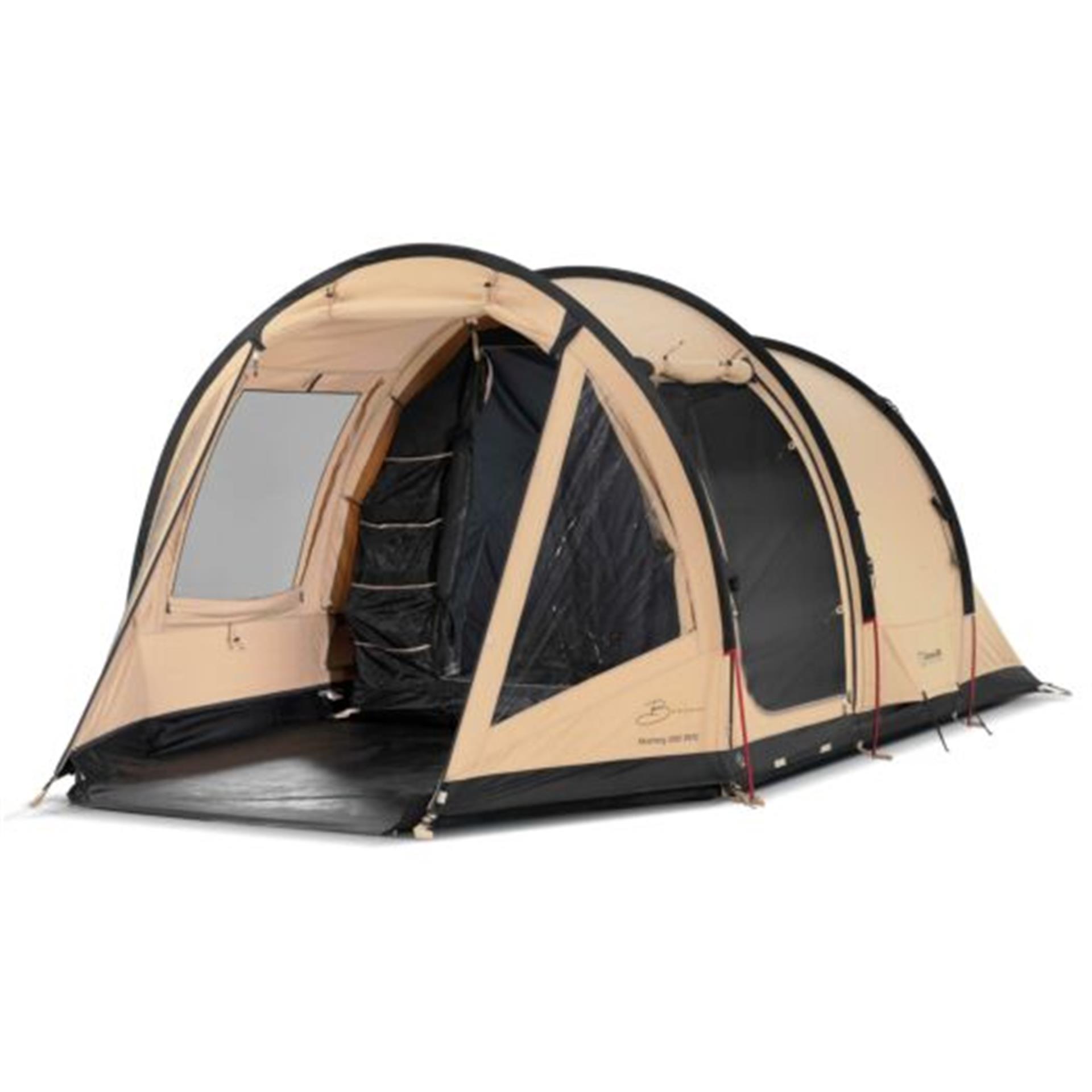 De tent heeft een Permanent “Air Vent” ventilatiesysteem aan de achterzijde voor een goede ventilatie en een stroomkabel doorvoer systeem met ritsen, aan de linker- en rechterzijde. Naast de vooringang heeft de tunneltent een zij-ingang met horraam. Het slaapvertrek heeft een lengte van lengte van 230 cm en is extra donker. De gordijnen hebben een variosysteem voor traploos verduisteren met perfecte afsluiting. De tunneltent is inclusief haringen, draagtas en scheerlijnen.