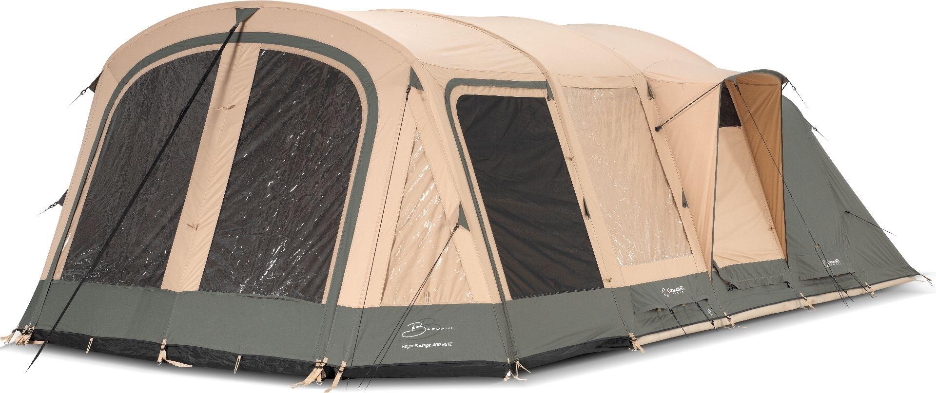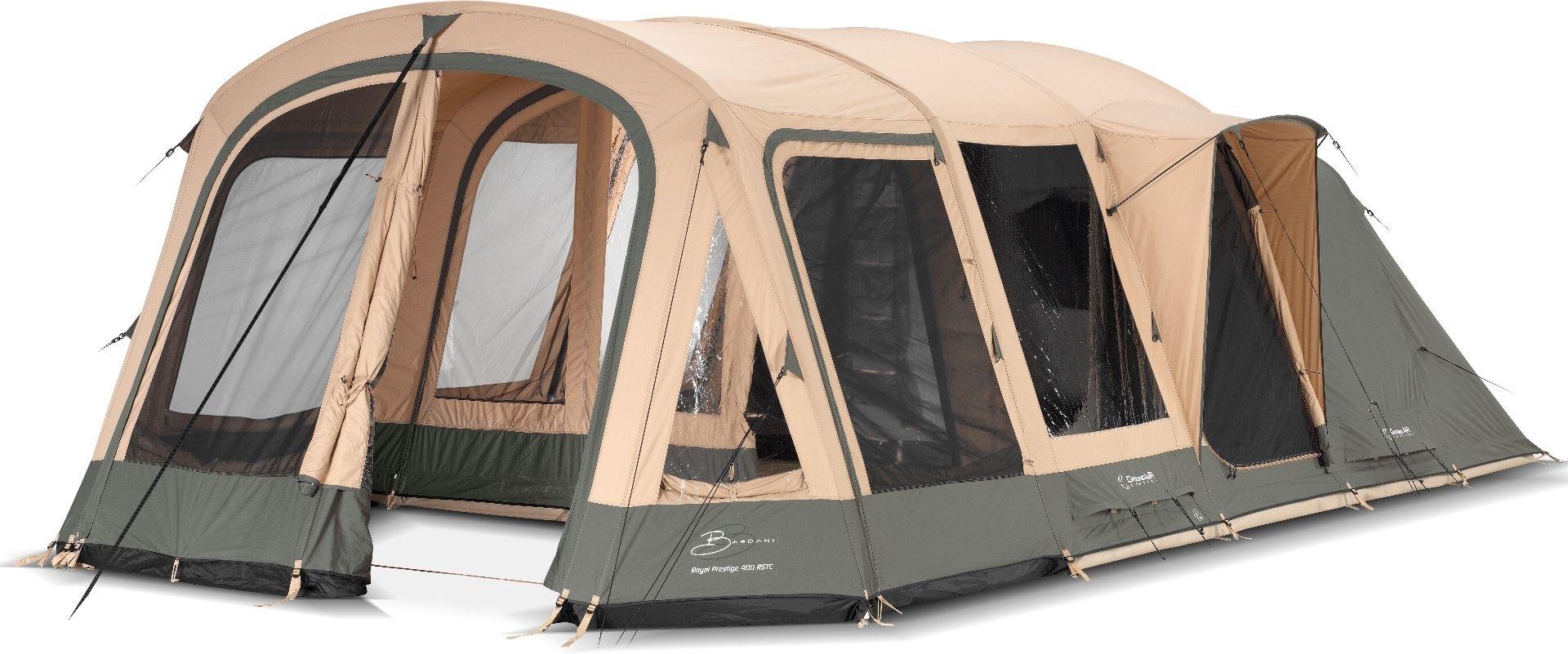 De Bardani Royal Prestige 400 RSTC tunneltent is een luxe familietent voor vijf personen met drie lange slaapcabines, veel leefruimte en een personaliseerbare indeling. Deze tunneltent van Bardani is uitstekend geventileerd, zodat u altijd kunt genieten van een aangenaam leefklimaat.