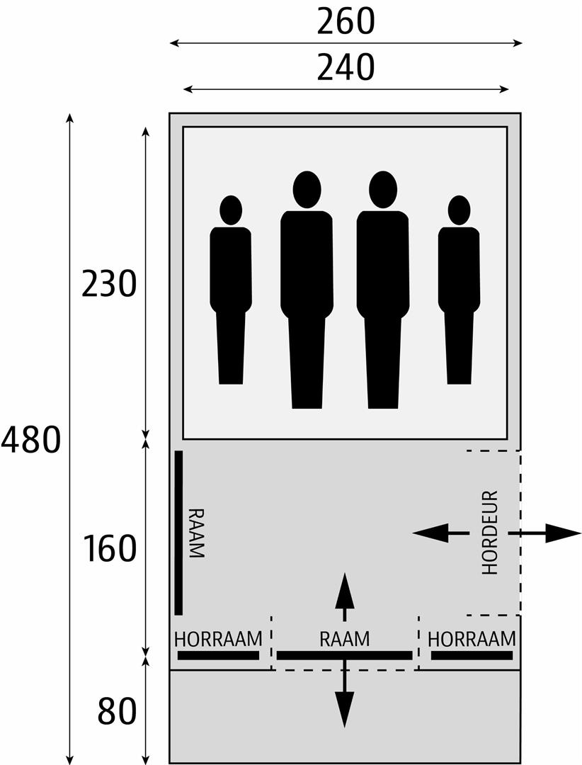 De ruime voorbouw heeft zowel een voor- als zijingang, wat de toegankelijkheid vergemakkelijkt en extra ruimte biedt voor bagage of andere kampeerspullen. De tent is ontworpen met een comfortabele stahoogte, zodat u zich gemakkelijk kunt verplaatsen en altijd voldoende ruimte heeft om te bewegen.