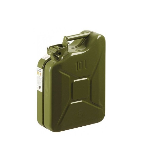 Oerdegelijke 10L stalen (leger) jerrycan met beugelsluiting voor het veilig opslaan en vervoeren van alle soorten brandstof. Deze jerrycan is UN, TUV en BAM goedgekeurd en van de hoogst mogelijke kwaliteit. Voorzien van benzinebestendige coating en geschikt voor universele jerrycan houders. Onze stalen jerrycans worden in Europa geproduceerd en zijn netjes afgewerkt. Dit in tegenstelling tot Chinese stalen jerrycans die veel andere verkopers aanbieden. Deze zijn vaak niet eens voorzien van een keurmerk en mogen dan ook niet gebruikt worden voor gevaarlijke vloeistoffen zoals brandstof. Ons advies is dan ook om hier goed op te letten bij de aanschaf van een stalen jerrycan.