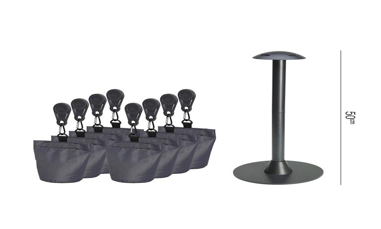 Hoes steun van 50 cm plus 8 zandzakjes om hoes te verzwaren.