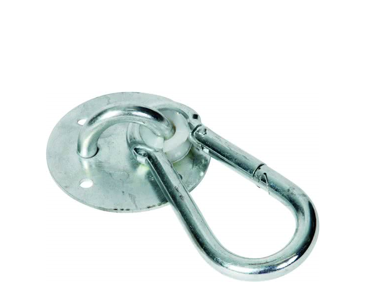 Een stalen muurbevestiging voor het ophangen een hangmat. Deze universele haak is op een muur te bevestigen en vervolgens is de hangmat op te hangen aan de haak.
