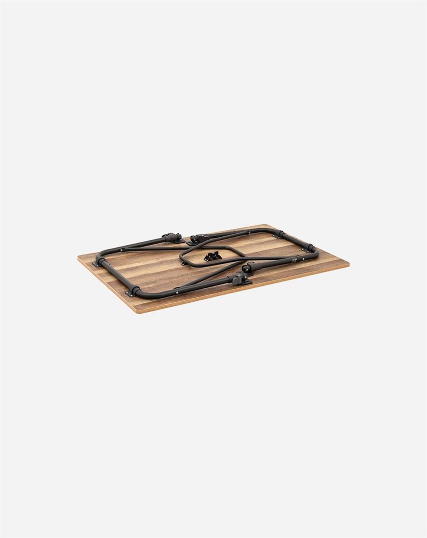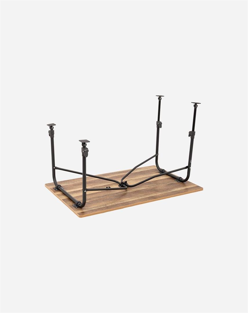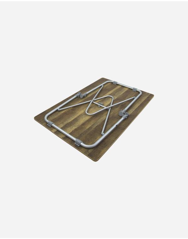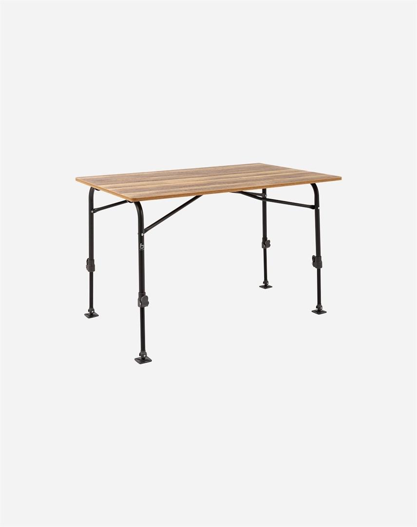 Een lichtgewicht maar zeer stabiele campingtafel. De tafel is heeft een glasfiber top met kunststof rand welke hittebestendig en watervast is. Tevens heeft het tafelblad een zeer stijlvolle houtlook. Het frame is van aluminium en de campingtafel is voorzien van voetjes met stabilisatoren zodat de tafel op iedere ondergrond stevig staat. Tevens zijn de poten in hoogte te verstellen (traploos).