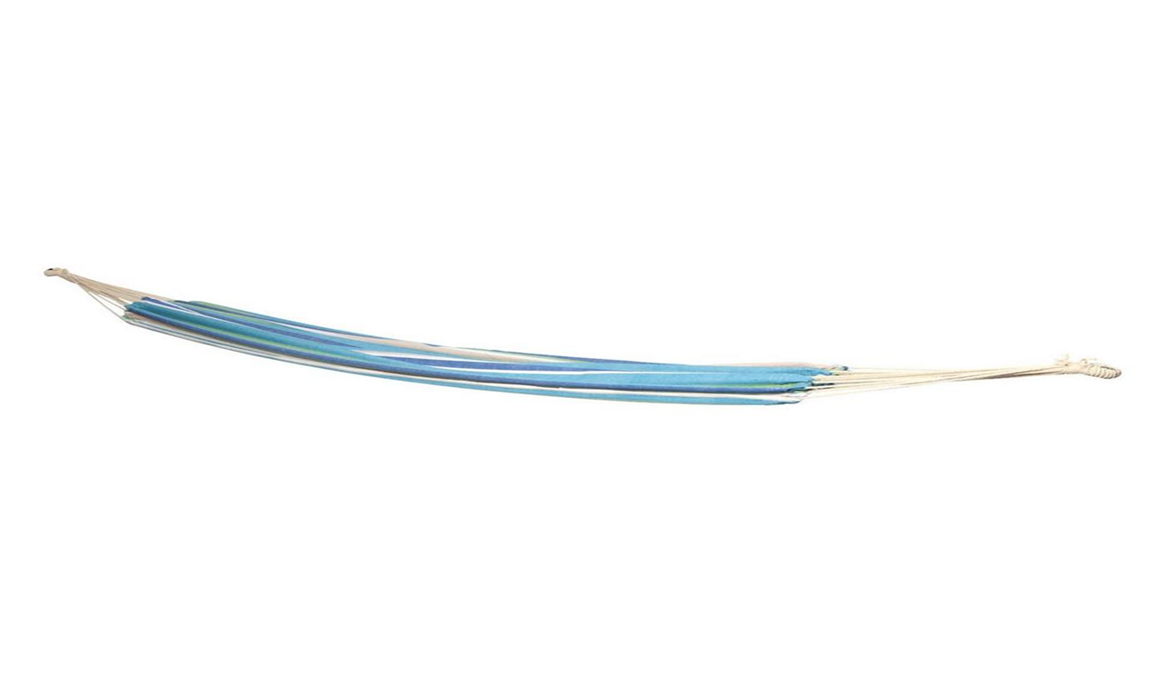 Een vrolijke en stevige hangmat, geleverd zonder ophangsysteem. Haalt het échte vakantiegevoel naar boven! Gemaakt van stevig 320gr/m² katoen/polyester. De hangmat heeft geen spreidstok waardoor de stof zich volledig naar het lichaam vormt en minder snel kantelt, wat zorgt voor maximaal comfort. Maximaal draagvermogen: 150 kilogram. Ligoppervlak (lxb): 200 x 140 centimeter.