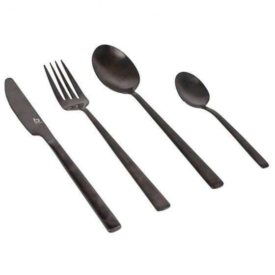 Een stijlvolle 16-delige bestekset met een industriële uitstraling, geschikt voor 4 personen. Gemaakt van sterk roestvrij staal en is vaatwasmachinebestendig. Daarnaast ligt de handgreep lekker in de hand. Geeft je gedekte tafel een elegante uitstraling.