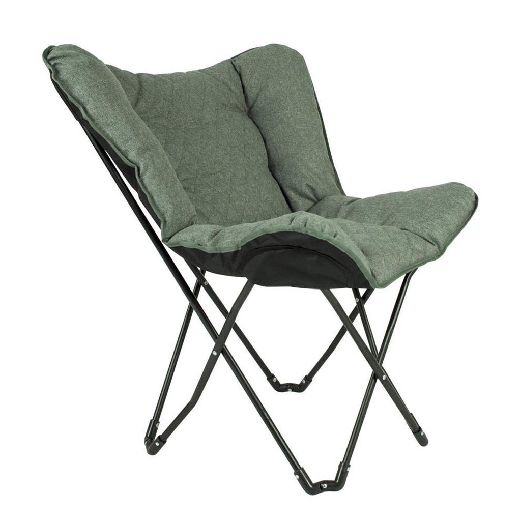 Een 'must-have' vlinderstoel. Deze luxe stoel is voorzien van een gestikt patroon. Zeer comfortabel door de gepolsterde Cationic stof en de brede en diepe zit. Het stalen frame is eenvoudig in te klappen waardoor de stoel makkelijk mee te nemen is, inclusief draagtas. Een ideale stoel voor in de tuin of op de camping, maar ook op het balkon en in de woonkamer.