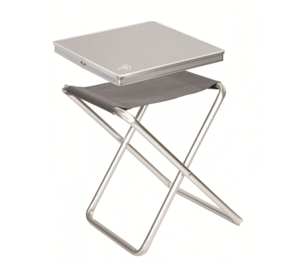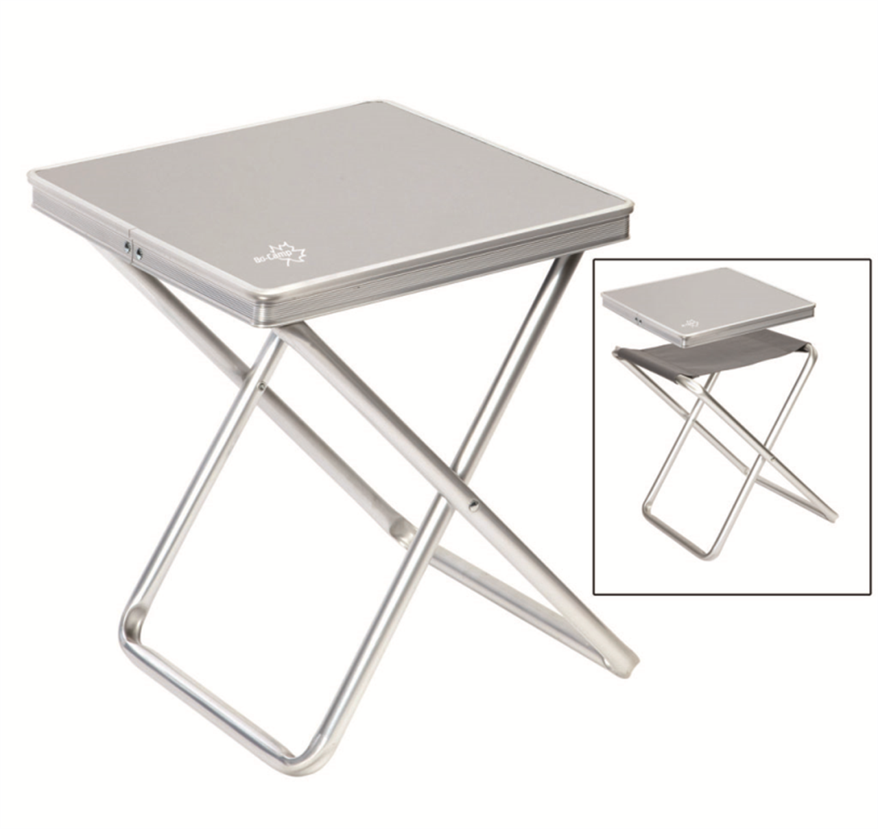 BC Krukje + oplegblad. Een zeer stevig en stabiel krukje met handig oplegblad. Zo kan dit krukje worden gebruikt om te zitten, maar ook als bijzettafeltje. Dit krukje heeft een aluminium frame en een comfortabel 600 denier nylon zittingdekje. Het oplegblad is gemaakt van MDF met een stevige aluminium rand. Omgedraaid is dit oplegblad ook te gebruiken als dienblad. Zithoogte: 45 centimeter.