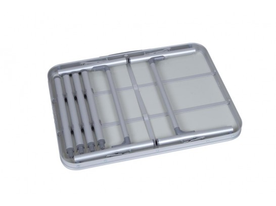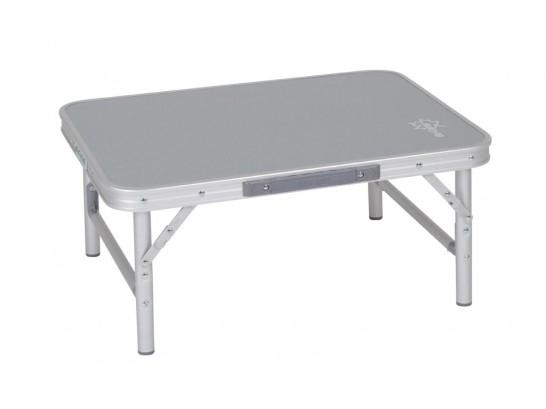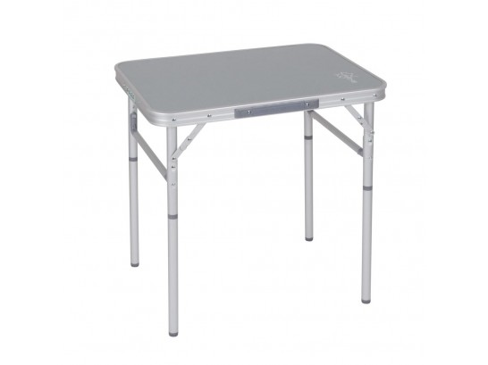 Een uiterst stabiele campingtafel met watervast en hittebestendig tafelblad. Deze tafel heeft afneembare poten welke eenvoudig zijn op te bergen aan de onderkant van het tafelblad. Gemaakt van lichtgewicht aluminium met een watervast en hittebestendig tafelblad. De poten zijn in hoogte verstelbaar (25/60 cm) en hebben stelschroeven voor de fijnafstelling. Ingeklapt (lxbxh): 60x45x3,5 centimeter.