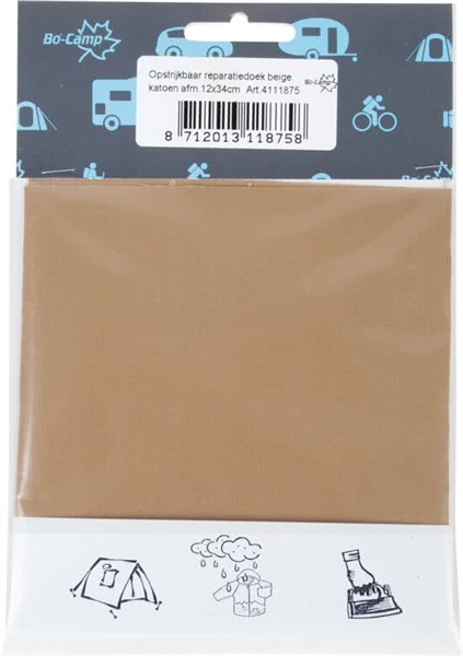 Reparatiedoek van natuurlijk katoen. Aan te brengen door gebruik van een warmtebron als een strijkijzer of een verwarmd pannetje. Uitermate geschikt voor reparatie van tenten of andere katoenen ondergronden.