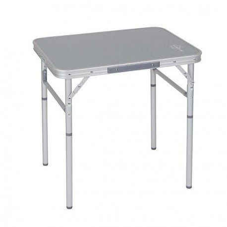 Een uiterst stabiele campingtafel. Deze tafel heeft afneembare poten en is hierdoor eenvoudig en compact in te klappen. Gemaakt van lichtgewicht aluminium. De poten zijn in hoogte verstelbaar (30/70 cm) en hebben stelschroeven voor de fijnafstelling. Ingeklapt (lxbxh): 70x60x3,5 centimeter.