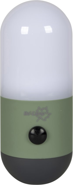 Een stijlvolle, zeer compacte en multifunctionele lamp. Verzorgt prettig licht door high power LED's met warme lichtkleur en de wit matte kap. De lamp is te gebruiken in drie lichtstanden: 30%, 60% en 100%. Voorzien van een stroeve rubberised behuizing voor meer grip en een inklapbare ophanghaak. De lamp is daardoor zowel staand als hangend bruikbaar. Werkt op 3x AA batterijen (niet inbegrepen).