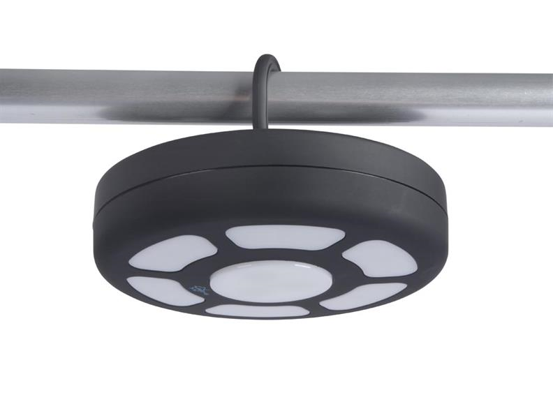 Een zeer compacte en stijlvolle hanglamp. Verzorgt een prettig licht door de 21 LED's met warme lichtkleur en wit matte delen. De lamp is te gebruiken in drie lichtstanden: 30%, 60% en 100%. Voorzien van een stroeve rubberised behuizing voor meer grip en een inklapbaar hengsel. Werkt op 4x AAA batterijen (niet inbegrepen). Brandduur: 100-12 uur. Lichtopbrengst: 15-65 lumen.