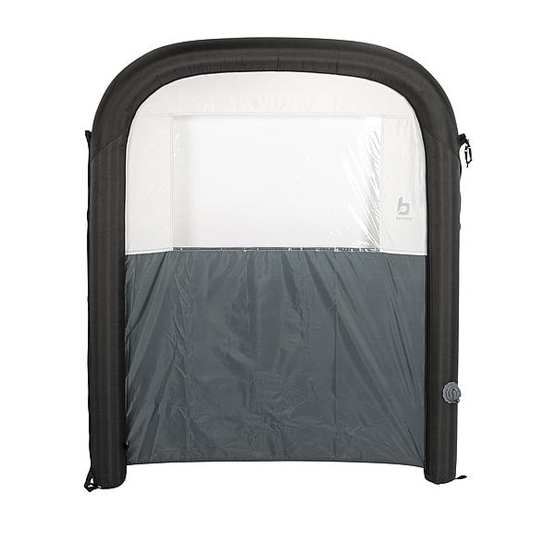 Een solide en weersbestendig opblaasbaar windscherm. Gemaakt van stevig 150D Polyester. Voorzien van een luchtslang waarmee het windscherm eenvoudig en snel op te zetten is. Met rits om windschermen aan elkaar te kunnen koppelen. Ideaal tegen de wind, de zon of om uit het zicht te zitten. Perfect voor op het strand of op de camping. Wordt geleverd met een draagtas, scheerlijnen en haringen.