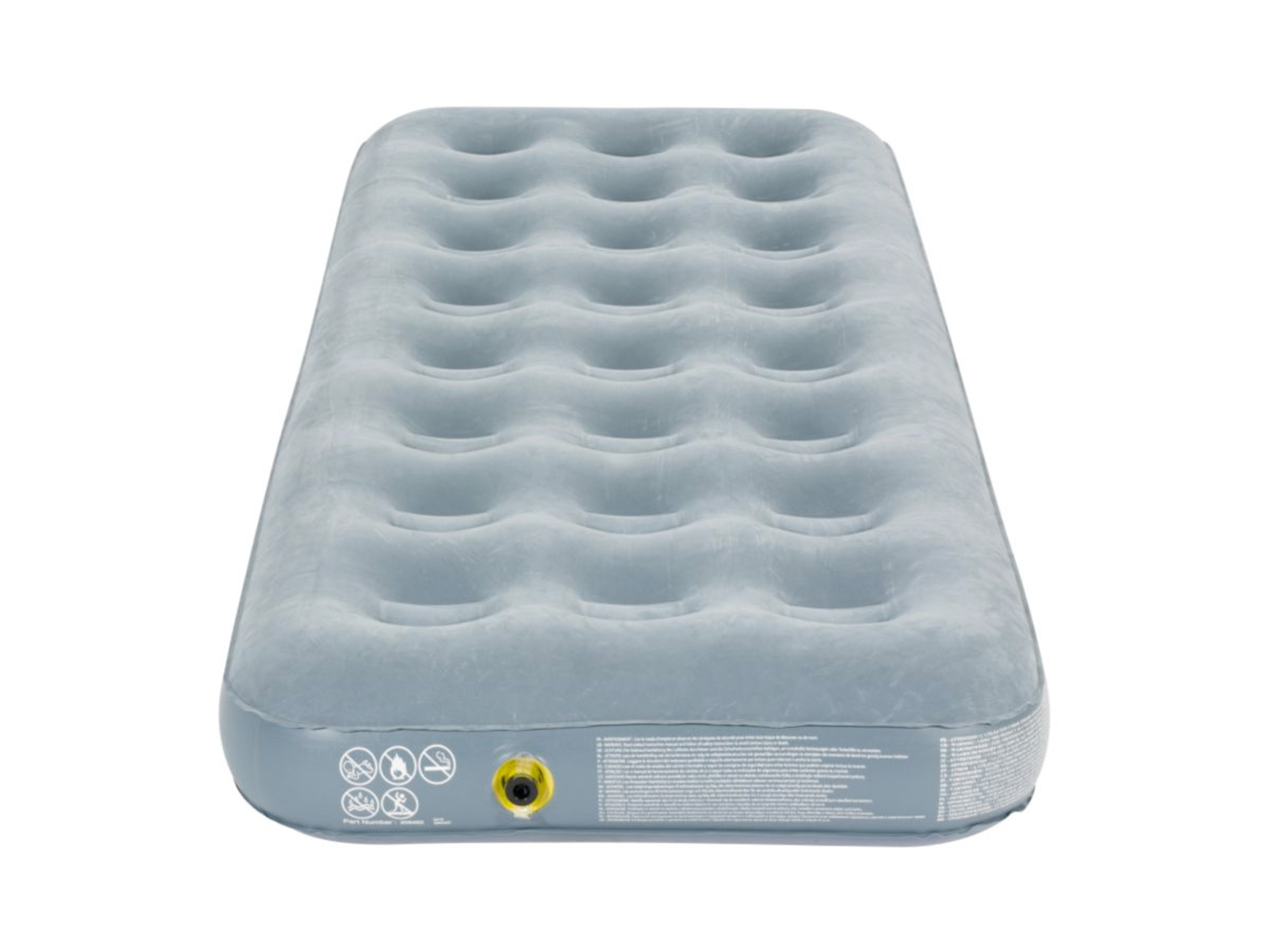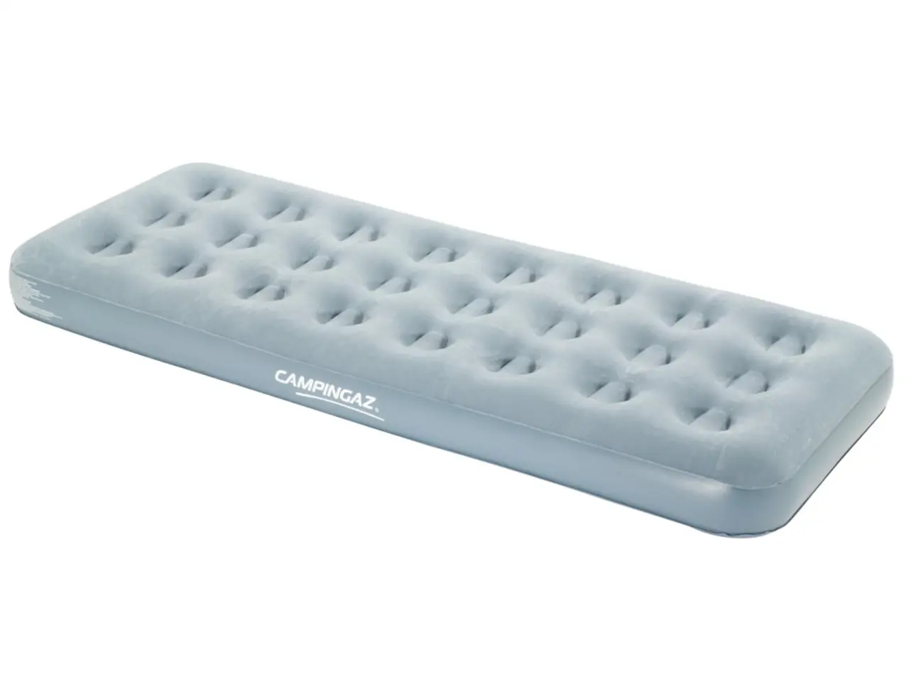 Het Campingaz Quickbed Single heeft een zachte velours toplaag, met een goede grip. De zij- en onderkant is gemaakt van een goede kwaliteit PVC die zeer lekvast is. Het Airtight-System en de dubbele ventielen voorkomen lekkage.