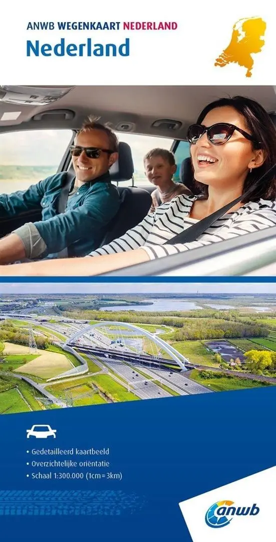 Heel Nederland op één heldere kaart inclusief uitgebreid plaatsnamenregister. Schaal 1:300.000.