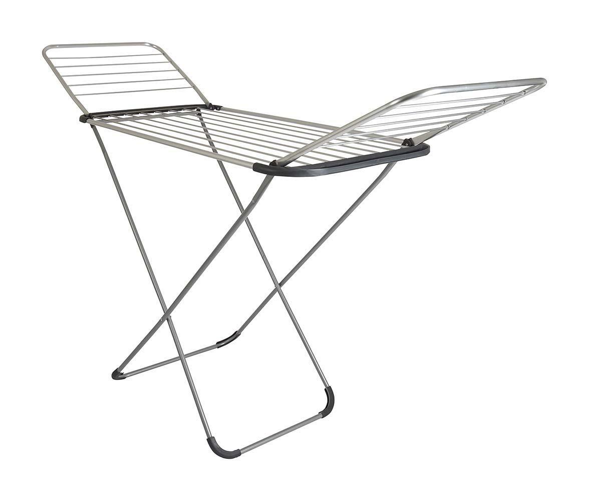 Een compact in te klappen droogrek met 2 zijrekken. Gemaakt van aluminium en staal. Zeer lichtgewicht droogrek met een draadlengte van in totaal 18 meter.