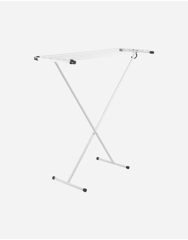 Een extra compact in te klappen droogrek. Gemaakt van sterk staal waardoor het gemakkelijk tegen tegen een stootje kan. Met een totale draadlengte van 5,5 meter. Inclusief ophanghaak om bijvoorbeeld een wasknijperzakje aan op te hangen.