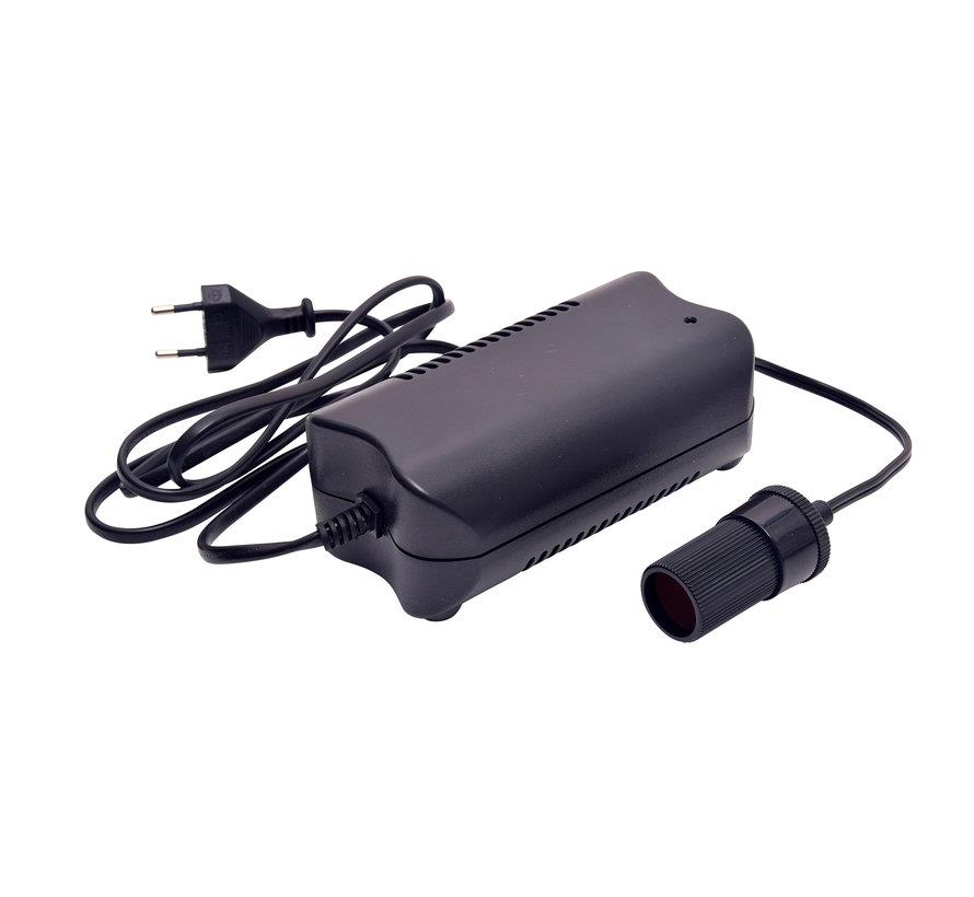Een handige converter voor het omzetten van 230 Volt naar 12 Volt. Bruikbaar voor koelboxen of andere apparatuur met een 12 Volt aansluiting. 5 Ampère.