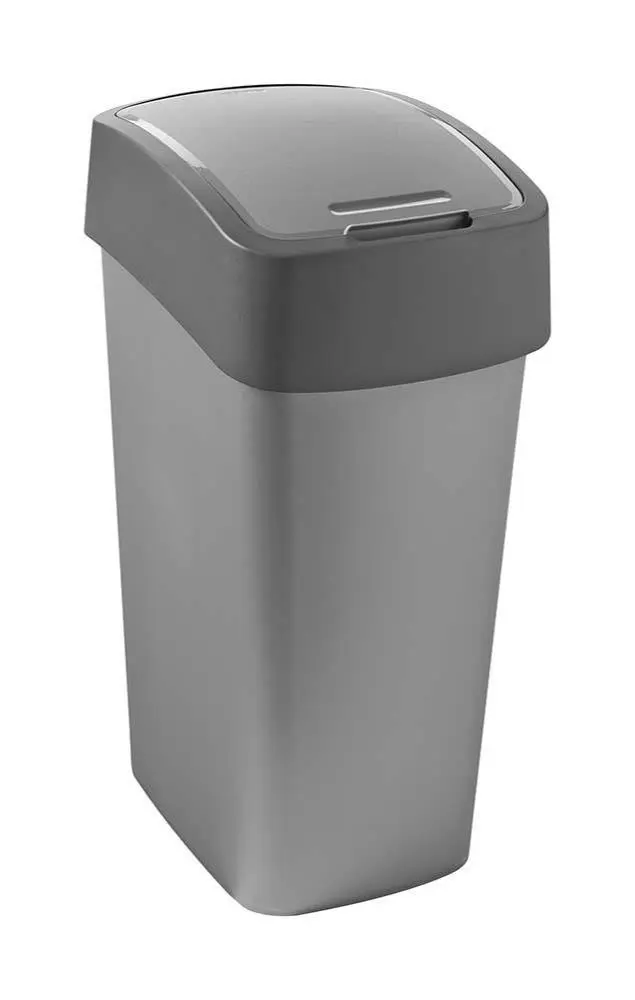 Een smal model afvalemmer. Door het model kan de prullenbak in smalle ruimtes geplaatst worden. Voorzien van een praktisch deksel die op twee manieren open kan, namelijk naar beneden drukken of helemaal omhoog zetten. Het deksel verbergt de vuilniszak, waardoor een nette uitstraling gecreëerd wordt.