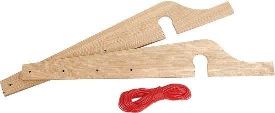 Drooglijnset voor de caravan. Geschikt voor horizontale bevestiging aan caravangrepen. Bevat 2 watervast verlijmde houten houders en 20 meter kunststof waslijn.