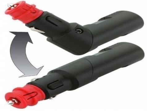 Deze universele 12V stekker kan tot een hoek van 90º gedraaid worden. Dankzij het rode opzetstuk past de stekker in zowel de kleine als de grote 12V stopcontacten. De stekker is voorzien van een 8A glaszekering.
