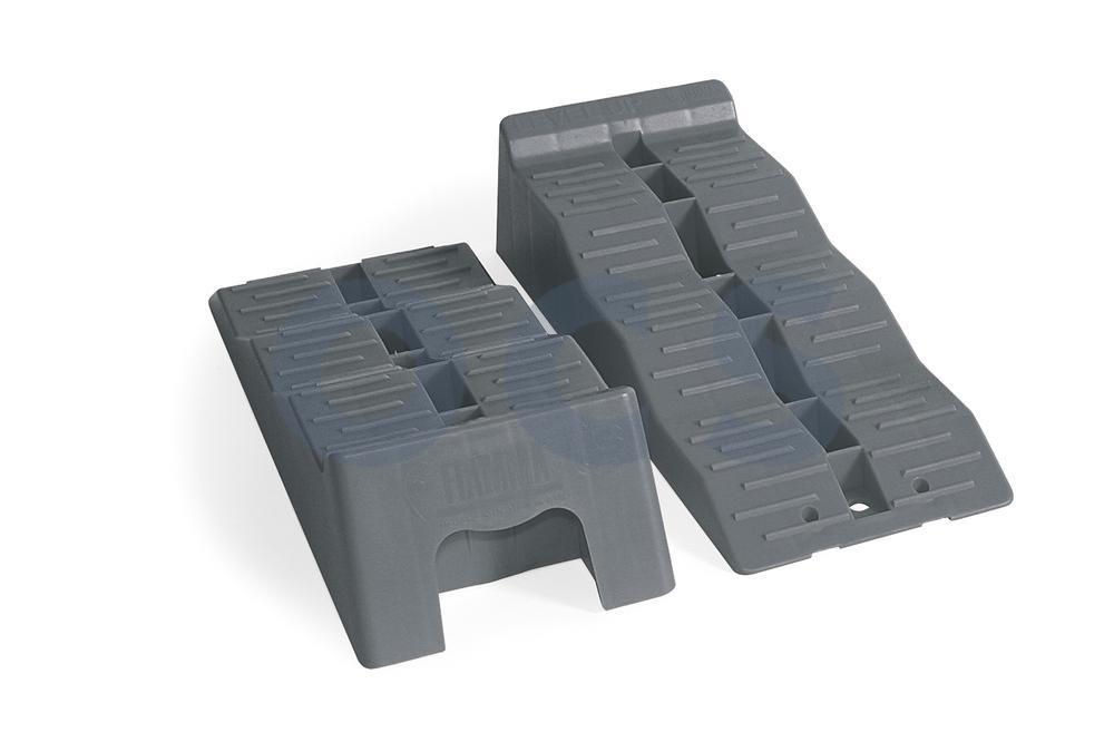 Geribbeld oppervlak biedt ruime grip aan de banden van het voertuig. Voorzien van 3 niveau’s (4-7-10cm). Lichtgewicht en gemaakt van corrosie werend materiaal. Eenvoudig te reinigen en UV-bestendig. Bestaande uit 2 stuks Level Up grijs.
