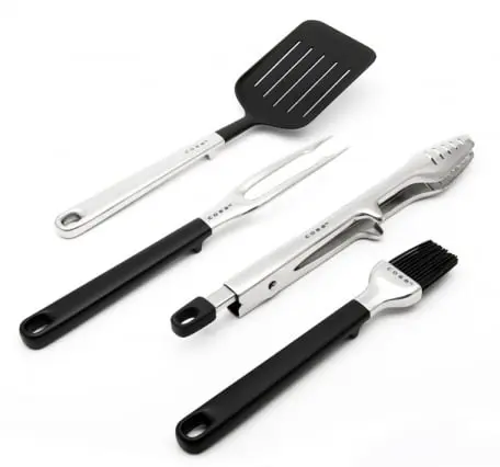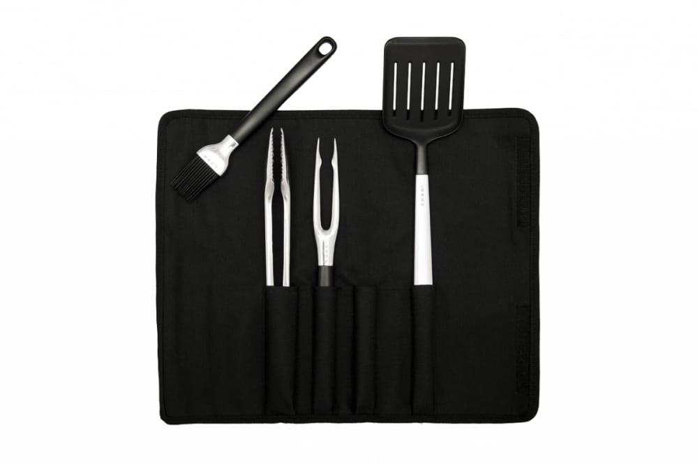 reedschap set van Cobb heb je alles in huis om het eten op de best mogelijke manier om te draaien. In de draagtas tref je een vork, spatel, tang en kwast aan. Het gereedschap is gemaakt van een hoge kwaliteit RVS en de handvaten zijn van nylon. Ieder gereedschap heeft een voetje zodat bijvoorbeeld de spatel iets van het BBQ oppervlak af ligt. De tang heeft de mogelijkheid om hem te “locken”, zo neemt hij minder ruimte in als je hem niet gebruikt. En ben je klaar met BBQ-en dan kan het Cobb BBQ gereedschap gewoon de vaatwasser in.