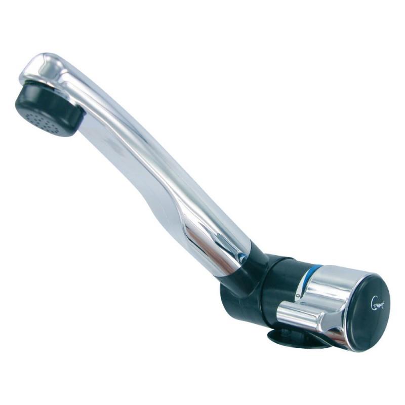 Eenhandskraan met draai- en zwenkbare uitloop en microschakelaar. Kunststof uitvoering. 12V. Voorzien van keramisch binnenwerk. Style 2000 met verticaal neerklapbare uitloop.