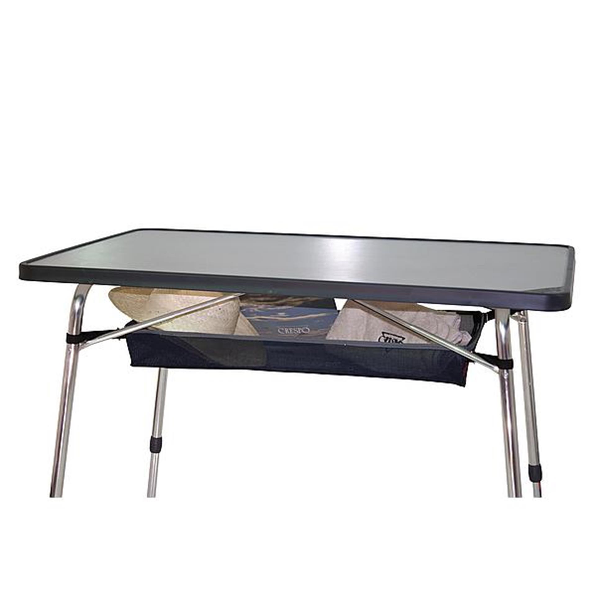 Een net voor onder het tafelblad. Ideaal voor het opbergen van kranten, tijdschriften, een telefoon of andere spullen. Perfect passend op Crespo tafels, maar ook universeel te gebruiken voor andere merken campingtafels door de klittenbandbevestiging.