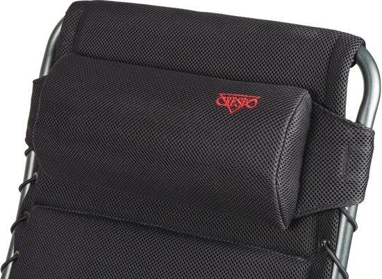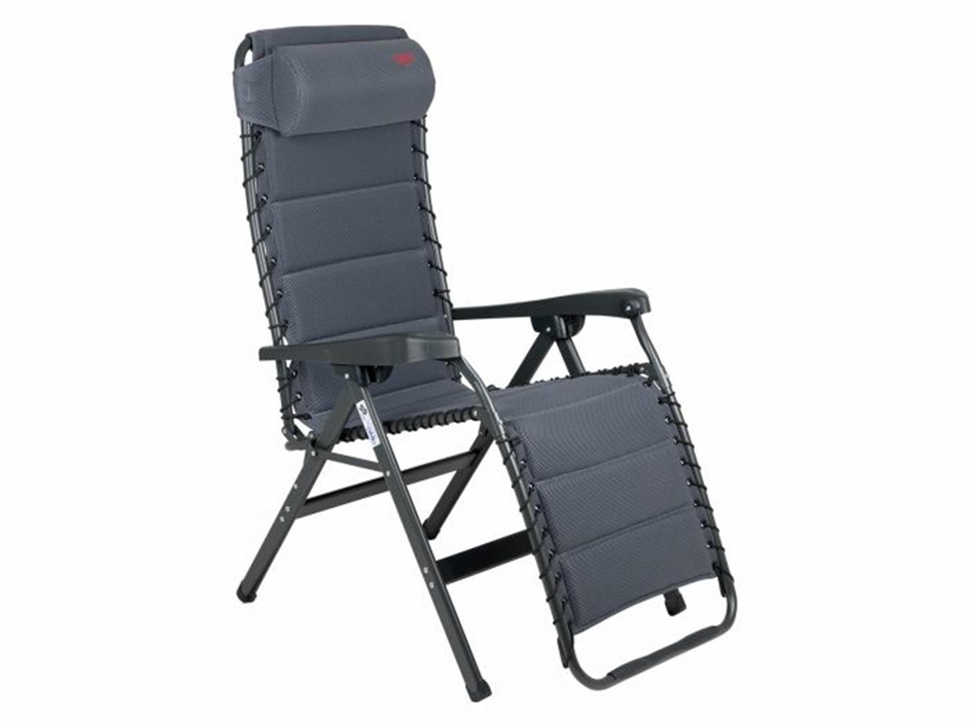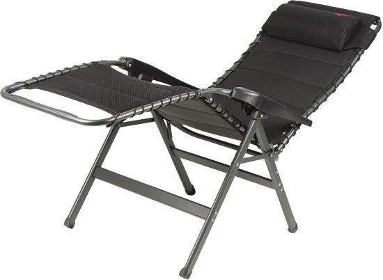 Een zeer luxe en comfortabele ligstoel met hoofdkussen. Deze stoel biedt maximaal comfort doordat de stoel traploos verstelbaar is. Daarnaast is deze stoel voorzien van een gevoerde stof welke is bevestigd door middel van elastiek. De comfortabele vulling van deze stof is extra luchtdoorlatend en houdt geen vocht vast. Hierdoor is deze stoel sneller droog dan andere stoelen met een traditionele schuimvulling. Daarnaast zorgt de afwerking voor een stijlvolle uitstraling. Zowel de rugleuning als de armleggers zijn ergonomisch gevormd en de stoel is voorzien van een remsysteem om de stoel in iedere gewenste positie te fixeren. De stoel is voorzien van een H-frame voor extra stabiliteit. De stoel heeft een extra brede, een extra diepe en een extra hoge zit. Ingeklapt is deze stoel zeer compact en daardoor gemakkelijk mee te nemen in de meegeleverde opbergtas.