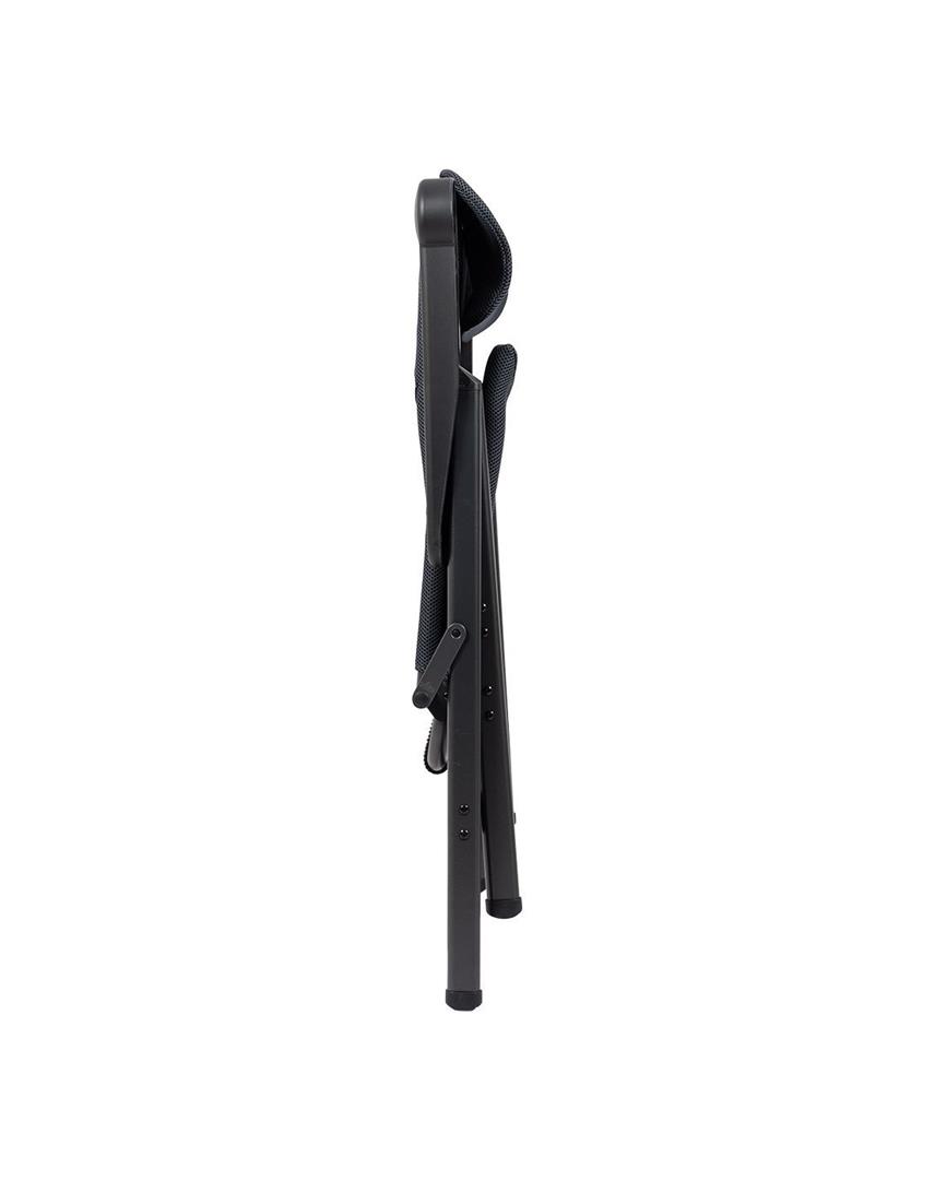 Een zeer luxe en extra ruime standenstoel. Deze stoel is voorzien van een verstelbare hoofdsteun en is uitermate geschikt voor de 'grotere' mens. Biedt maximaal comfort door de in 7 standen verstelbare rugleuning en de gepolsterde stof. De comfortabele vulling van deze stof heeft een open celstructuur waardoor geen vocht wordt vastgehouden. Daarnaast zijn zowel de rugleuning als de armleggers ergonomisch gevormd. De stoel is voorzien van een geanodiseerd H-frame voor extra stabiliteit en stevigheid. De stoel heeft een extra brede zit. Ingeklapt is deze stoel zeer compact en daardoor gemakkelijk mee te nemen. Maximale belasting: 200 kilogram!