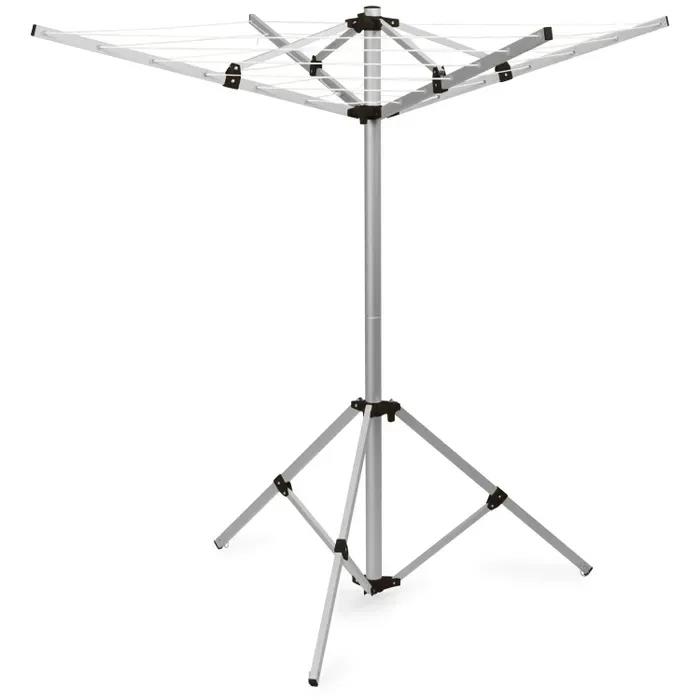 Deze DWS Pegasus 4 droogmolen met 4 armen is lichtgewicht en heeft maar liefst 6 niveaus om wasgoed op te hangen. De droogmolen heeft verschillende handige kenmerken; zoals kunststof ringen aan de rand, om beschadiging van de randen te voorkomen. Ook zijn de poten voorzien van haringverankering zodat uw droogmolen niet om- of wegwaait bij harde wind. De DWS Pegasus droogmolen heeft 4 armen, en maar liefst 6 niveaus om wasgoed op te hangen. De droogmolen is compact op te bergen en wordt geleverd inclusief draagtas. De droogmolen beschikt over 11 meter aan waslijn.