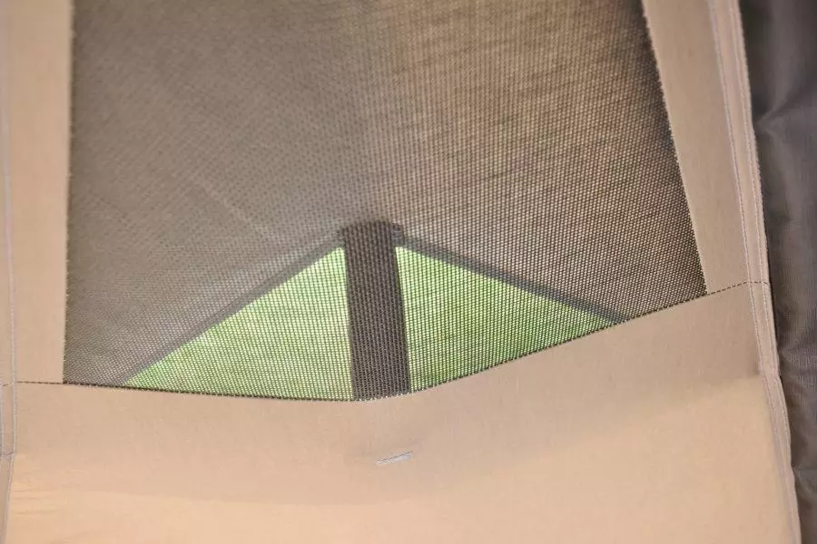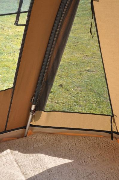 - Gehele tent voorzien van sterke spiraalritssluitingen; in tegenstelling tot getande ritssluitingen kunnen hier geen tandjes uitbreken