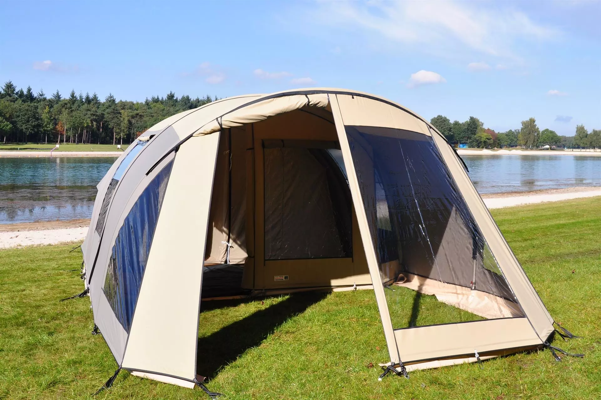 Het optionele voorscherm past perfect in het totaalplaatje van uw Falco Havik 3500 tent en is voorzien van een helder raam en een grote oprolbare deur. Het voorscherm heeft een ritssluiting in de middenstrook, waardoor het mogelijk is om het voorscherm gedeeltelijk op te rollen en de beschutting deels te behouden. Een aanritsbaar voorscherm voorkomt het eventuele inregenen en zorgt er voor dat u het 280 cm. diepe vloeroppervlakte onder uw royale luifel optimaal kunt benutten. Als u tijdens slechtere weersomstandigheden dan ook nog de voorwand van de basistent geheel naar de zijkant toe wegrolt, kunt u in uw stormvaste Havik 3500 (in combinatie met een gesloten voorscherm) genieten van een enorm binnenverblijf met excellente ventilatiemogelijkheden!