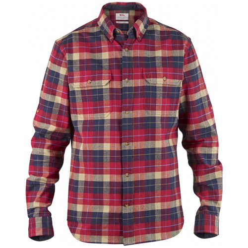Outdoorshirt met lange mouwen, button-down kraag en normale pasvorm. Gemaakt van zacht katoenflanel met G-1000-versterkingen aan de binnenzijde van de kraag, de manchetten en de zakkleppen. Twee borstzakken met penhouders. De mouwen kunnen worden opgerold en vastgezet met een knoop.