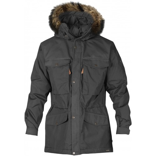 Tijdloze, lange trekkingjas met isolerende voering voor wie tijdens winterse avonturen een beetje extra warmte kan waarderen. Het bovendeel is gevoerd met een zachte, high-loft meshstof, terwijl de mouwen een nylon voering met synthetische vulling hebben voor weinig frictie met de kleding die eronder wordt gedragen. De buitenlaag isvan duurzaam G-1000 Original met extra duurzaam G-1000 HeavyDuty op de schouders en de onderrug. Hierdoor biedt de jas bescherming tegen wind en regen en kan het vocht dat aan de binnenkant ontstaat wanneer je beweegt weg. Dat is belangrijk in een koud klimaat waar je niet het risico wilt lopen om af te koelen door vochtige kledingstukken van je basislaag. Royale snit met voldoende ruimte om er isolerende kledingstukken onder te dragen en een grote plooi aan de achterkant voor extra bewegingsvrijheid. Een brede beschermdende overslag en ruime capuchon met een opvouwbare klep beschermen tegen bijtende wind. De capuchon kan bovendien worden aangepast om perfect rond het hoofd te passen en is voorzien van een afneembare synthetische bontrand welke extra bescherming biedt wanneer het sneeuwt. De tweewegrits kan van onder af geopend worden voor ventilatie. Veel zakken die praktische opbergruimte bieden voor dingen die je bij de hand wilt hebben, onder andere de ruime verticale borstzakken met ritsen, waarop nog extra zakken zitten met kleppen. Van onder twee zakken die van bovenaf toegankelijk zijn, een binnenzak en een zak op de mouw met een rits voor bijvoorbeeld een GPS. Verstelbaar met trekkoord in de taille en aan de onderrand en klittenband aan de manchetten. Het jack kan worden geïmpregneerd met Greenland Wax voor extra bescherming tegen wind, regen en slijtage.