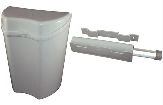 Zware kwaliteit afvalbak met 2 handige bevestigingssystemen voor caravan en voortent.