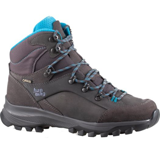 De Hanwag Banks Lady GTX 203001 bergschoenen dames asphalt ocean zijn lichte trekkingschoenen. De Hanwag bergschoenen hebben een binnenwerk van Gore-Tex waardoor de schoen winddicht, waterdicht en ademend is. Naast dit binnenwerk heeft de schoen een Vibram Endurance Pro buitenzool. Deze buitenzool biedt een goede demping en goede grip op zachte ondergronden. Deze zool gaat samen met een doorlopende dempende tussenzool en heeft een goede flex. De buitenkant van de schoen is gemaakt van stevig en robuust nubuck leer.