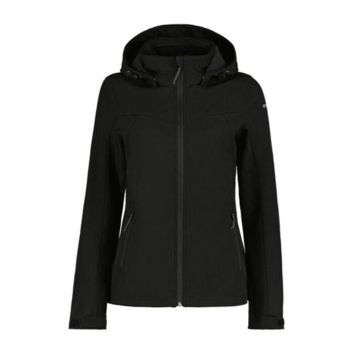 De Icepeak Brenham Zwarte jas voor dames is een comfortabele tussenjas voor de lente en herfst. Deze zwarte jas is voorzien van waterafstotend materiaal en is winddicht. Dit jack heeft een prettig draagcomfort doordat de binnenkant een dunne laag fleece bevat. De stijl van de jas kan eenvoudig naar wens aangepast worden doordat de capuchon afneembaar is. Aan de voorzijde van de jas zitten twee jaszakken die beide voorzien zijn van een ritssluiting.