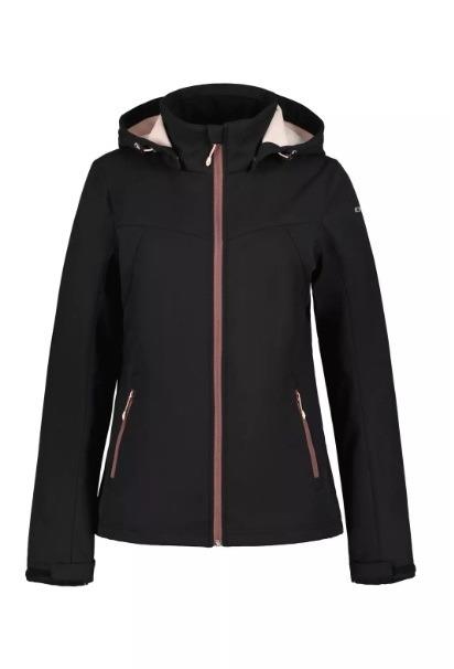 De Icepeak Brenham Zwart/Wijnrode jas voor dames is een comfortabele tussenjas voor de lente en herfst. Deze zwarte jas is voorzien van waterafstotend materiaal en is winddicht. Dit jack heeft een prettig draagcomfort doordat de binnenkant een dunne laag fleece bevat. De stijl van de jas kan eenvoudig naar wens aangepast worden doordat de capuchon afneembaar is. Aan de voorzijde van de jas zitten twee jaszakken die beide voorzien zijn van een ritssluiting.