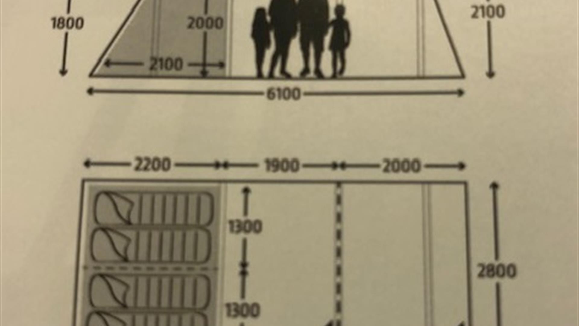 Eenmaal opgezet ontdekt u dat er veel leefruimte is voor een gezin. De achterste slaapkamers hebben een rits tussen de compartimenten die kan worden opgerold om één grote slaapkamer te maken. Er is een grote leefruimte met een vastgenaaid grondzeil en een grote deur aan de linkerkant met een muskietengaas dat kan worden gebruikt om de insecten op warme dagen buiten te houden. De leefruimte heeft een horizontale voorwand die volledig gebruik van het vloeroppervlak mogelijk maakt en zo veel meer ruimte geeft dan een aflopende voorwand. Het opvallende kenmerk van deze tent is de grote ingebouwde voorluifel die de voordeur beschermt tegen slecht weer en veel overdekte woonruimte biedt.