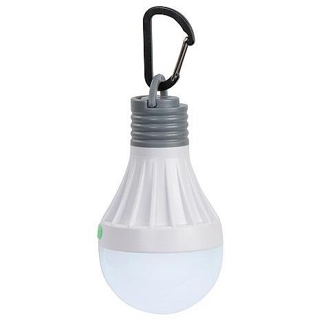 Een hanglamp in de vorm van een gloeilamp. Deze waterdichte hanglamp beschikt over een LED en is in 2 lichtstanden te gebruiken: 50% en 100%. De lamp is snel en gemakkelijk op te hangen met de karabiner. Werkt op 1x AA batterij (niet inbegrepen). Brandduur: 20-8 uur. Lichtopbrengst: 15-35 lumen.