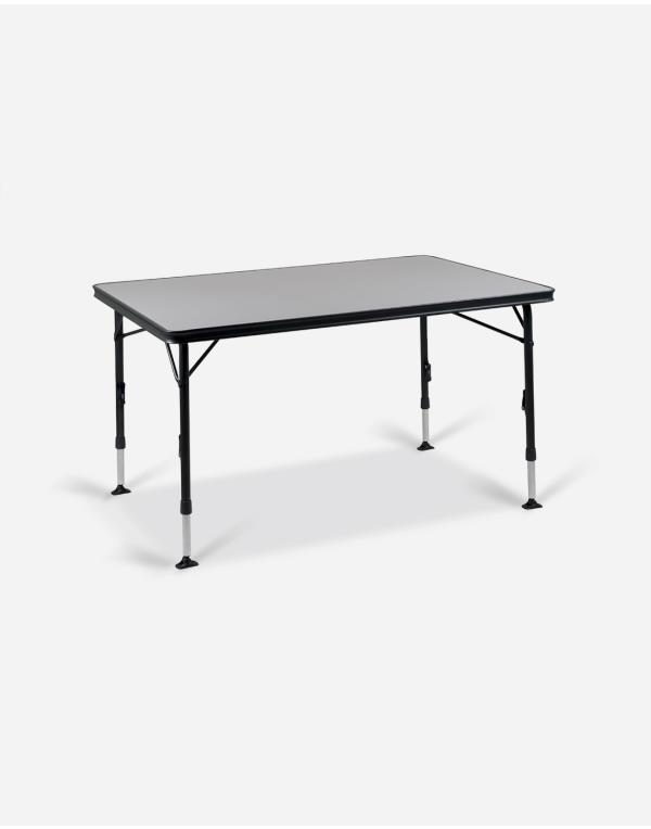 Een zeer stabiele tafel van hoge kwaliteit. Dankzij de speciale constructie is deze tafel eenvoudig in- en uit te klappen. Daarnaast zijn de poten na het inklappen stevig te bevestigen in de geleide aluminium rails aan de onderzijde van het tafelblad. Het tafelblad is extra ruim zodat deze plaats biedt voor 6 personen. De aluminium rails aan de onderzijde van deze campingtafel zorgt eveneens voor extra versteviging. De hoogwaardige materialen en het hittebestendige en watervaste tafelblad zorgen voor een lange levensduur. De poten bieden een hoge stabilteit door de dikke (28 mm) en extra verstevigde buizen. De stabilisatie voetjes zorgen voor extra grip op iedere ondergrond. Deze tafel is licht van gewicht door het aluminium frame.