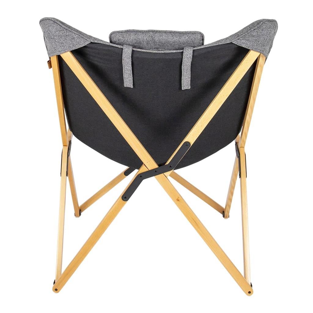 De inklapbare stoel is gemaakt van hout en Nika polyester. De comfortabele vulling van Nika stof zorgt voor een zacht, maar sterk gevoel. De relaxstoel is ontworpen met een trendy en stevig houten frame. Deze campingstoel is bijzonder comfortabel door de combinatie van de extra brede, diepe zitting, de gevoerde bekleding en het kussen.